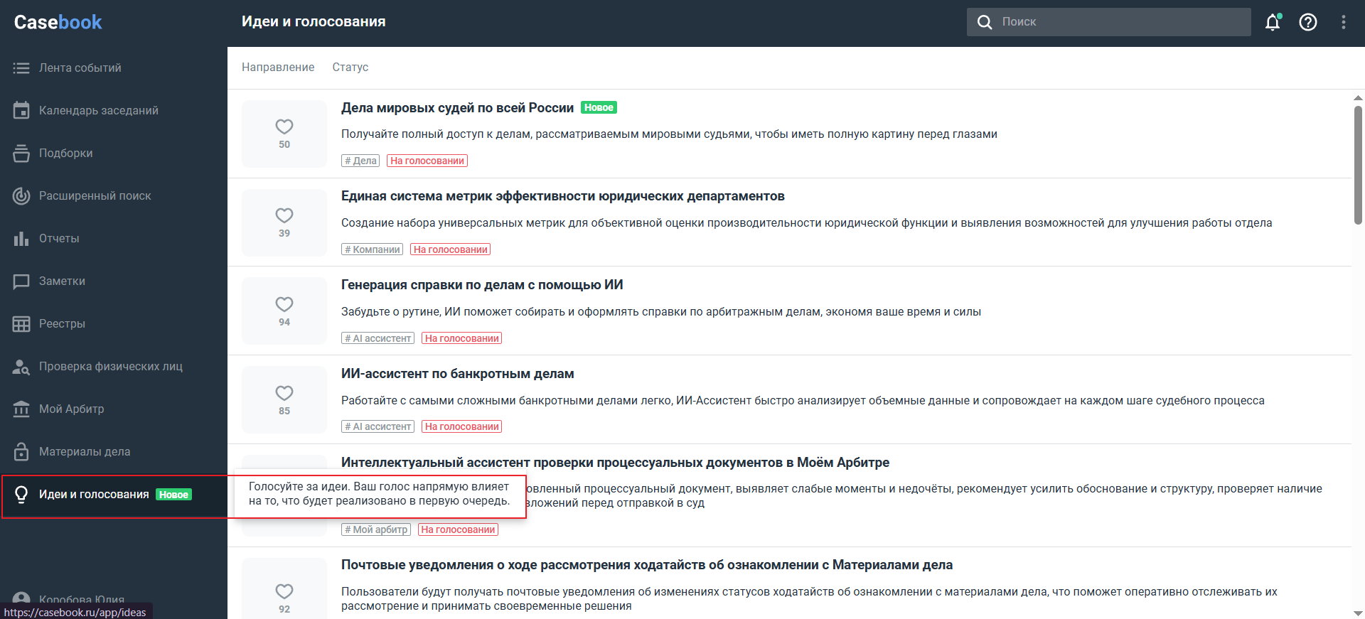 Голосуйте за важные функции в новом разделе «Идеи и голосования». Мы показываем планы разработки прямо в системе, а вы выбираете, что реально нужно в вашей работе.